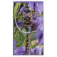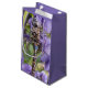 For dragonfly fans! Small style gift bag with purple trim that features the close-up photo image of a colourful Blue-Eyed Darner dragonfly resting on purple Aconite flowers.