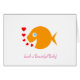 Blue-Eyed Goldfish Cartoon Art Baby Announcment featuring a cute little fish blowing kisses in the form of tiny hearts, is a unisex card, so you can use it wheher your newborn is a boy or a girl. This versatile inexpensive baby themed card can also be used as a a baby shower invitation, st birthday card, or even as a thank you card. Easily add your own text to the inside of the card using the space provided.