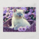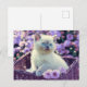 Blue Eyed Kitten Baby Cat In Basket Lilac Flowers Postcard