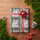 Blue eyed white with brown Siberian Husky puppy in front of a Christmas tree dog lovers Christmas holiday wrapping paper