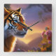 Blue Eyed Tiger and Pink Flowers Square Wall Clock