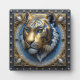This 3D artwork mimics the craftsmanship of a goldsmith metalworker specialising in gold, silver, and other precious metals. It features a 3D tiger's portrait in metallic gold and silver tones, set against a background of intricately detailed baroque-style leaves. The artwork is printed to capture the rich textures visual effects of the metallic elements.