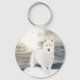 Blue eyed, white Husky, in snow Key Ring