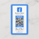 This facebook review card has the facebook trademark blue framing the front side and a solid blue back. The front has the facebook logo at the top, your business name, a review us call to action message and a QR code to link your facebook review URL. Below that you have a scan me button and a personalised thank you message at the bottom. On the backside you have your logo at the top and below it all your business information. At the bottom there is a message to connect with you on facebook with your facebook page username. This is a clean and simple card that has everything you need! It's a review card and business card in one. If you need help with this template please send me a message and I will gladly assist you. Thank you, Sandy