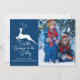 An elegant reindeer leaps over the Christmas words Tis the Season to be Jolly on this beautiful blue holiday card. Classic elegance with a pretty white deer over gorgeous calligraphy and your family photo filling the front of this cute winter greeting card. Add another photograph on the back along with the year.