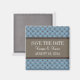 Trendy and chic Fancy Lattice Save the Date Magnet featuring a stylish circle and diamond studded pattern over a vibrant dusk blue background with a broad two-toned brown border. This elegant save the date magnet is perfect for announcing your modern wedding. Easy to customise, simply add your wedding details in the text fields provided. Click "Customise It" to find more personalisation options.