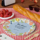 Serve up some farm fresh fun with this blue plate rimmed in cute, hand drawn fruits, veggies, and bakery treats. Swap in any name or party details, then set the table for a sweet “Farmer’s Market” celebration—perfect for birthdays, baby showers, picnics, or brunch with garden-loving friends.