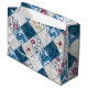 Blue fashionable rustic pattern of fabric scraps large gift bag