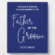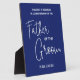 This elegant white on blue wedding memorial plaque is a beautiful way to remember and pay tribute to the father of the groom on the wedding day. Place this on the seat or at the table he would have sat in at the wedding.