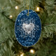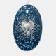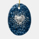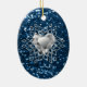 Beautiful Ceramic Oval Chrismas Ornament Featuring Blue Faux Glitter Diamond Heart Snowflake Design