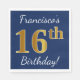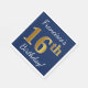 Blue, Faux Gold 16th Birthday + Custom Name Napkin