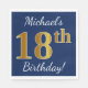 Blue, Faux Gold 18th Birthday + Custom Name Napkin