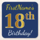 Blue, Faux Gold 18th Birthday + Custom Name Square Paper Coaster