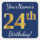 Blue, Faux Gold 24th Birthday + Custom Name Square Sticker