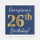 Blue, Faux Gold 26th Birthday + Custom Name Napkin