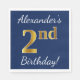 Blue, Faux Gold 2nd Birthday + Custom Name Napkin