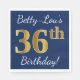 Blue, Faux Gold 36th Birthday + Custom Name Napkin