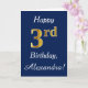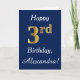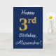 This simple birthday card design features the message "Happy 3rd Birthday", with the "3rd" having a faux gold-like appearance. It also features a custom name, and a dark blue background. It could be given to somebody who is celebrating their third birthday.