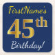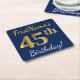 Blue, Faux Gold 45th Birthday + Custom Name Square Paper Coaster