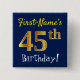 Blue, Faux Gold 45th Birthday, With Custom Name 15 Cm Square Badge