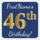 Blue, Faux Gold 46th Birthday + Custom Name Square Sticker