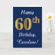 Blue, Faux Gold 60th Birthday + Custom Name Card