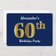 Blue, Faux Gold 60th Birthday Party + Custom Name Invitation