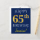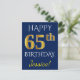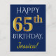 Blue, Faux Gold 65th Birthday + Custom Name Postcard