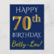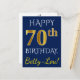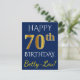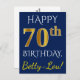 Blue, Faux Gold 70th Birthday + Custom Name Postcard