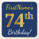 Blue, Faux Gold 74th Birthday + Custom Name Square Paper Coaster