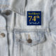 This simple square button design features a message like "First-Name’s 74th Birthday!", with the "74th" having a faux/imitation gold-like colouring look, on a blue coloured background. The name can be personalised. Buttons like these could perhaps be worn by guests at a birthday party for somebody who is celebrating their seventy fourth birthday, where the party is being held in a large area with lots of other people present (such as a city park or a theme park). [~Z0000164]