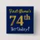 Blue, Faux Gold 74th Birthday, With Custom Name 15 Cm Square Badge
