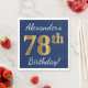 This simple paper napkin design features a message like "Alexander’s 78th Birthday!", with the "78th" having a faux gold-like appearance, on a blue coloured background. The name can be customised. It could be used at a birthday party for somebody who is celebrating their seventy eighth birthday. [~Z0000083]
