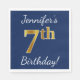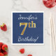 Blue, Faux Gold 7th Birthday + Custom Name Napkin