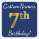 Blue, Faux Gold 7th Birthday + Custom Name Sticker