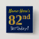 Blue, Faux Gold 82nd Birthday, With Custom Name 15 Cm Square Badge