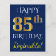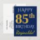 Blue, Faux Gold 85th Birthday + Custom Name Postcard