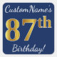 Blue, Faux Gold 87th Birthday + Custom Name Square Sticker