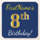 Blue, Faux Gold 8th Birthday + Custom Name Square Paper Coaster
