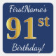Blue, Faux Gold 91st Birthday + Custom Name Square Sticker