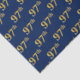 This tissue paper design features the ordinal number "97th" with a faux/imitation gold-like colouring. It also features a blue coloured background. It could perhaps be used with gifts being given for somebody’s ninety seventh birthday, or maybe for a married couple’s ninety seventh wedding anniversary, or for some other 97th event or occasion. [~Z0000156]