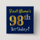 Blue, Faux Gold 98th Birthday, With Custom Name 15 Cm Square Badge