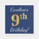 Blue, Faux Gold 9th Birthday + Custom Name Napkin