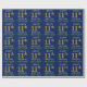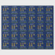 This wrapping paper design features a message like "HAPPY 11th BIRTHDAY", with the "11th" having a faux/imitation gold appearance. It also features a name that can be customised, and a blue coloured background. It could perhaps be used when wrapping gifts being given for somebody’s eleventh birthday. [~Z0000135]