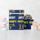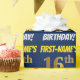 This wrapping paper design features a message like "FIRST-NAME’S 16th BIRTHDAY!", with the "16th" having a faux/imitation gold-like colour appearance, and with the name and "BIRTHDAY" in a fun, bold font. The name can be personalised, and the background is coloured blue. Wrapping paper like this could perhaps be used when wrapping birthday gifts being given to somebody in celebration of their sixteenth birthday. [~Z0000209]