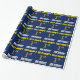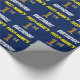 This wrapping paper design features a message like "FIRST-NAME’S 1st BIRTHDAY!", with the "1st" having a faux/imitation gold-like colour appearance, and with the name and "BIRTHDAY" in a fun, bold font. The name is customisable, and the background is coloured blue. Wrapping paper like this could perhaps be used when wrapping birthday gifts being given to somebody in celebration of their first birthday. [~Z0000209]