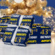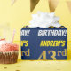 This wrapping paper design features a message like "ANDREW’S 43rd BIRTHDAY!", with the "43rd" having a faux/imitation gold-like colour appearance, and with the name and "BIRTHDAY" in a fun, bold font. The name is customisable, and the background is coloured blue. Wrapping paper like this could perhaps be used when wrapping birthday gifts being given to somebody in celebration of their forty third birthday. [~Z0000209]