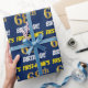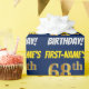 This wrapping paper design features a message like "FIRST-NAME’S 68th BIRTHDAY!", with the "68th" having a faux/imitation gold-like colour appearance, and with the name and "BIRTHDAY" in a fun, bold font. The name is customisable, and the background is coloured blue. Wrapping paper like this could perhaps be used when wrapping birthday gifts being given to somebody in celebration of their sixty eighth birthday. [~Z0000209]