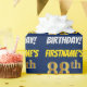 This wrapping paper design features a message like "FIRSTNAME’S 88th BIRTHDAY!", with the "88th" having a faux/imitation gold-like colour appearance, and with the name and "BIRTHDAY" in a fun, bold font. The name is customisable, and the background is coloured blue. Wrapping paper like this could perhaps be used when wrapping birthday gifts being given to somebody in celebration of their eighty eighth birthday. [~Z0000209]