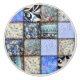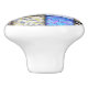 Blue Faux Patchwork Quilting Pattern Ceramic Knob